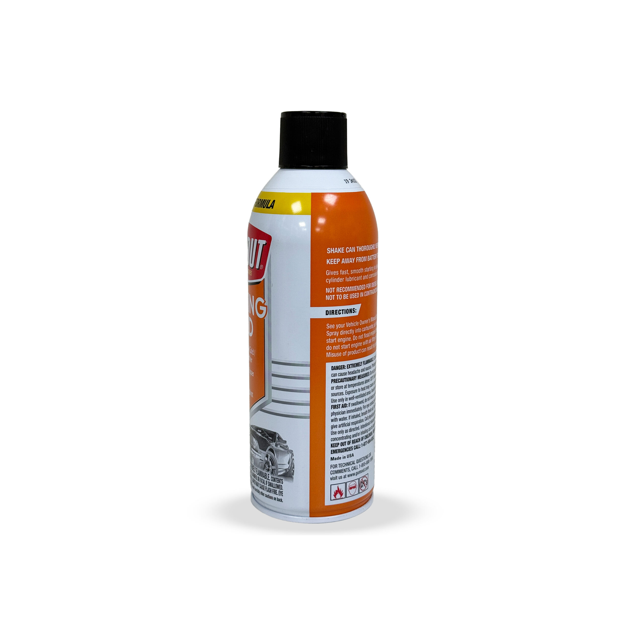 Gumout Starting Fluid (11 oz, #5072866) is a fast-acting aerosol designed to provide quick, reliable ignition for gasoline engines in extreme cold, high humidity, or damp conditions. It features a high-volatility formula that aids ignition and includes an upper cylinder lubricant and corrosion inhibitor to protect engines during startup.