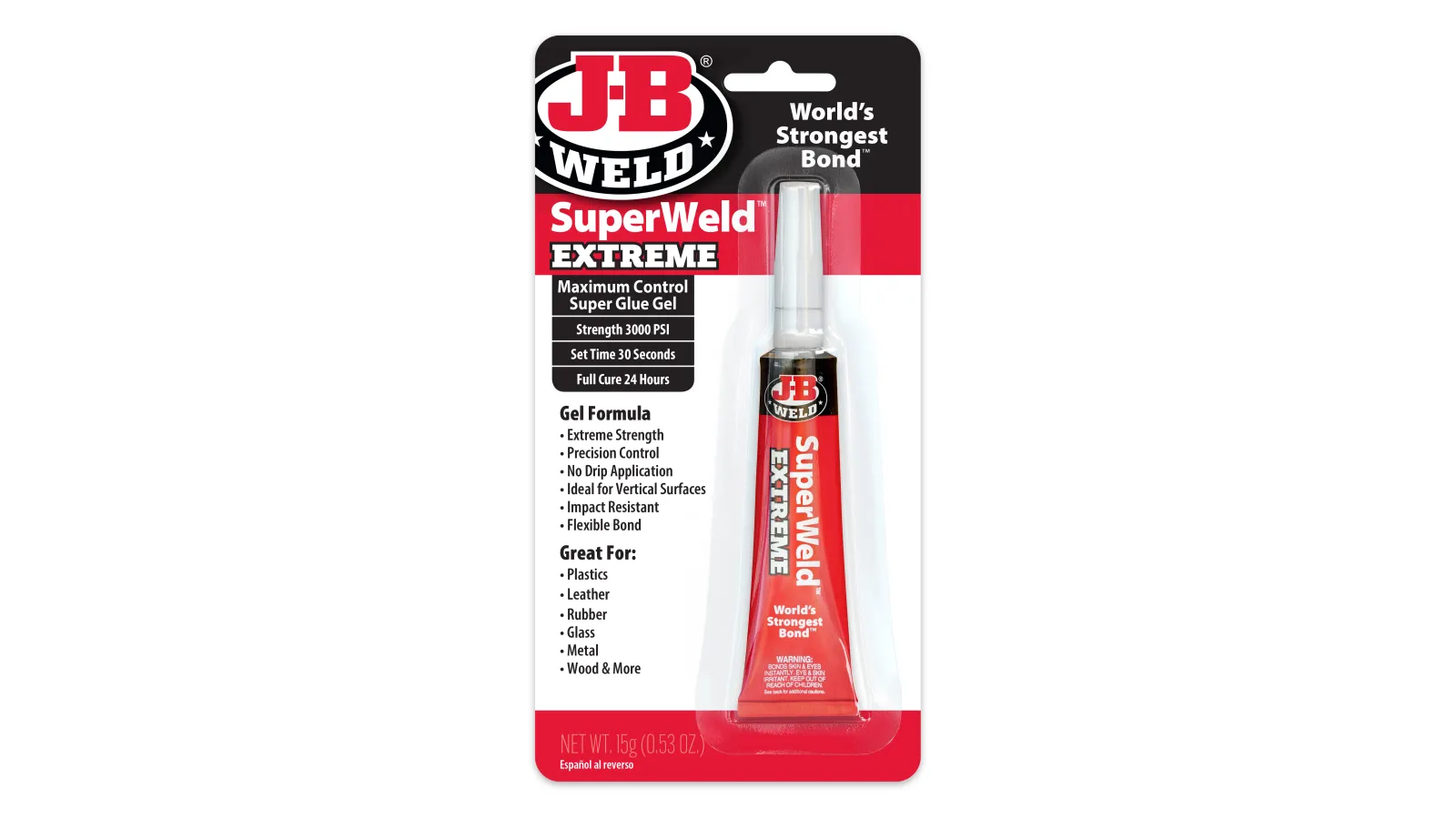 SuperWeld™ Extreme is a specially formulated Super Glue that provides a strong, flexible bond and cures in 24 hours. SuperWeld™ Extreme has a precision tip, no drip formula and is ideal for both vertical and horizontal surfaces! SuperWeld™ Extreme is impact resistant and has a flexible bond allowing it be great for plastics, leather, rubber, glass, metal, and more!