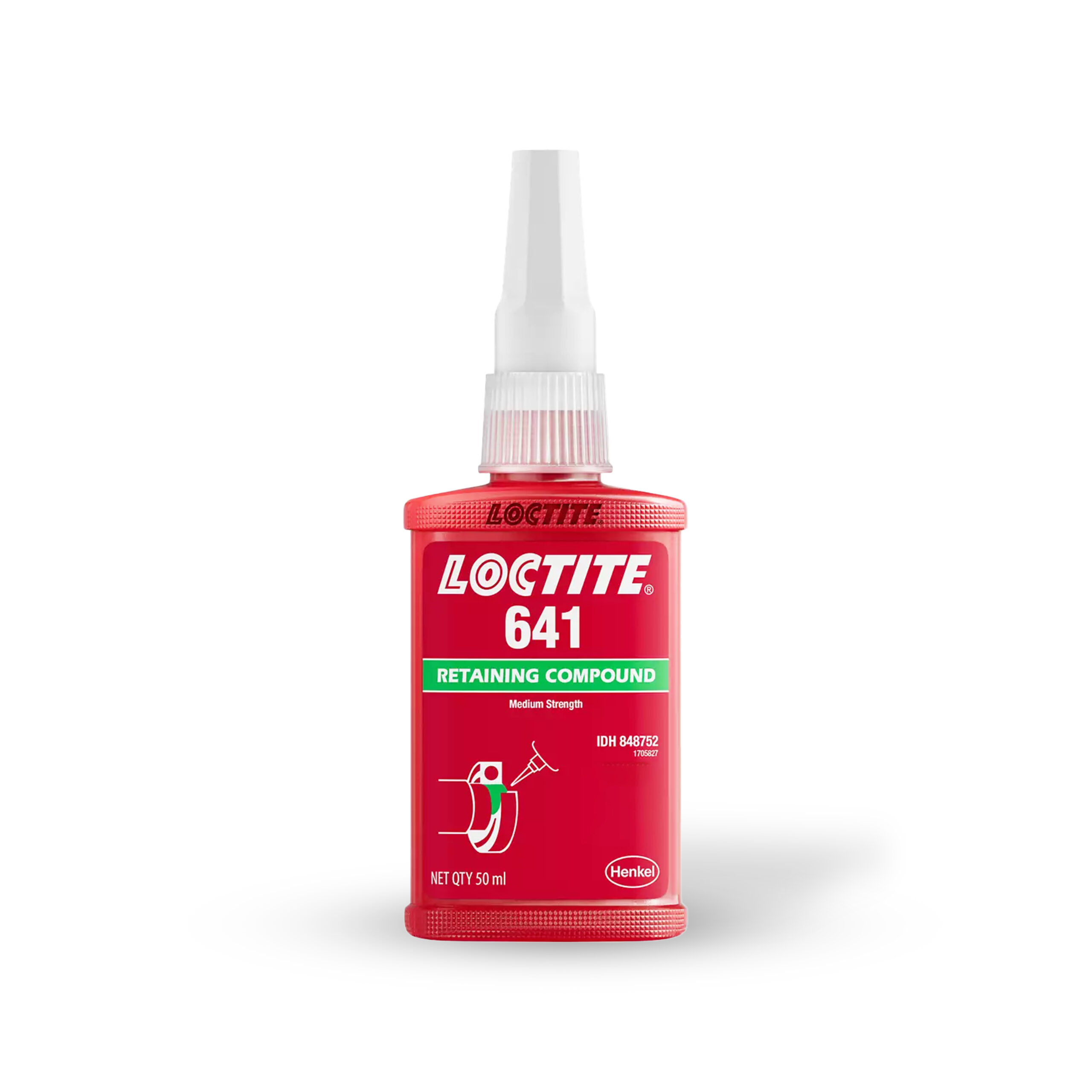 LOCTITE® 641 is designed for the bonding of cylindrical fitting parts, particularly where disassembly is required for service operations The product cures when confined in the absence of air between close fitting metal surfaces and prevents loosening and leakage from shock and vibrationTypical applications include retention of bearings onto shafts and into housings