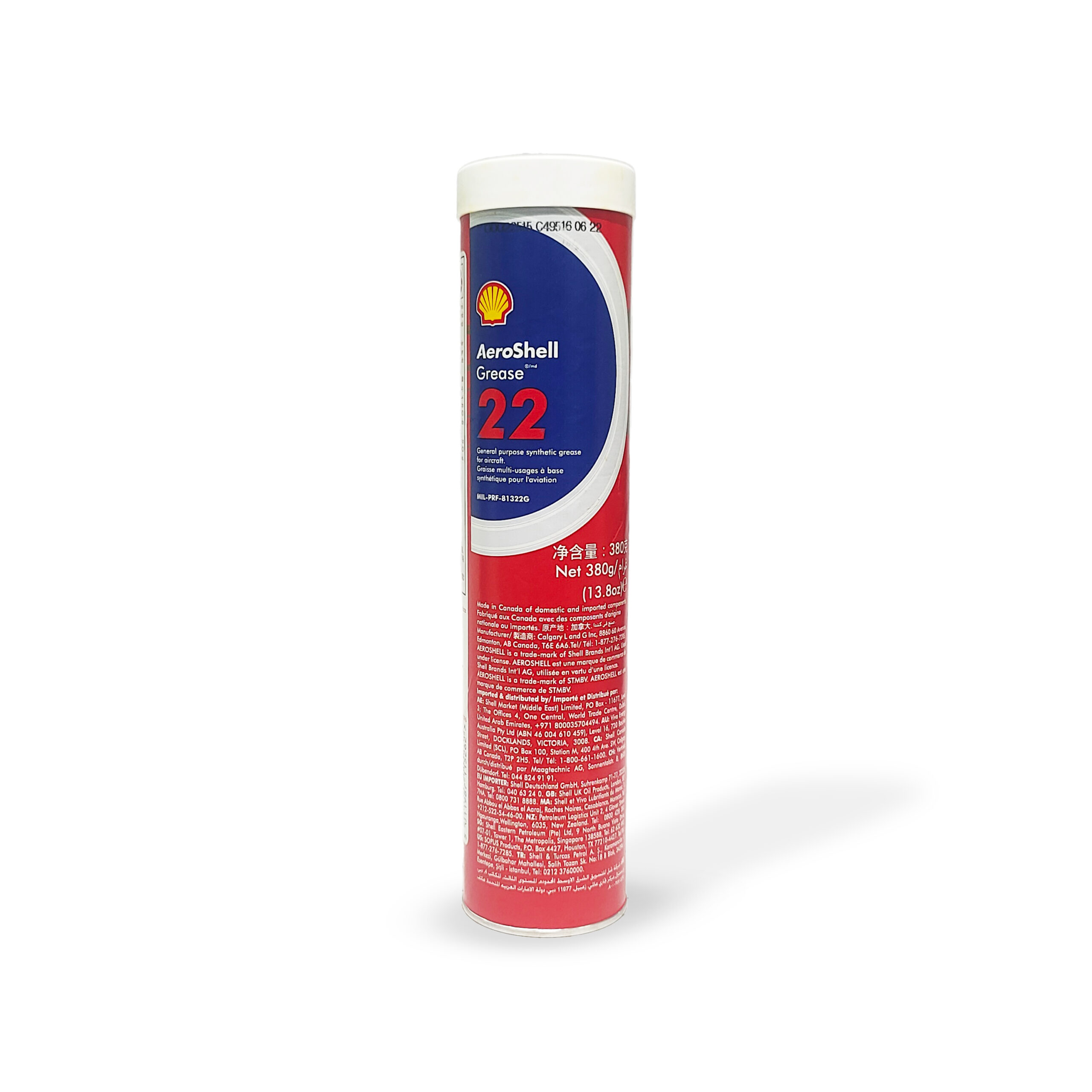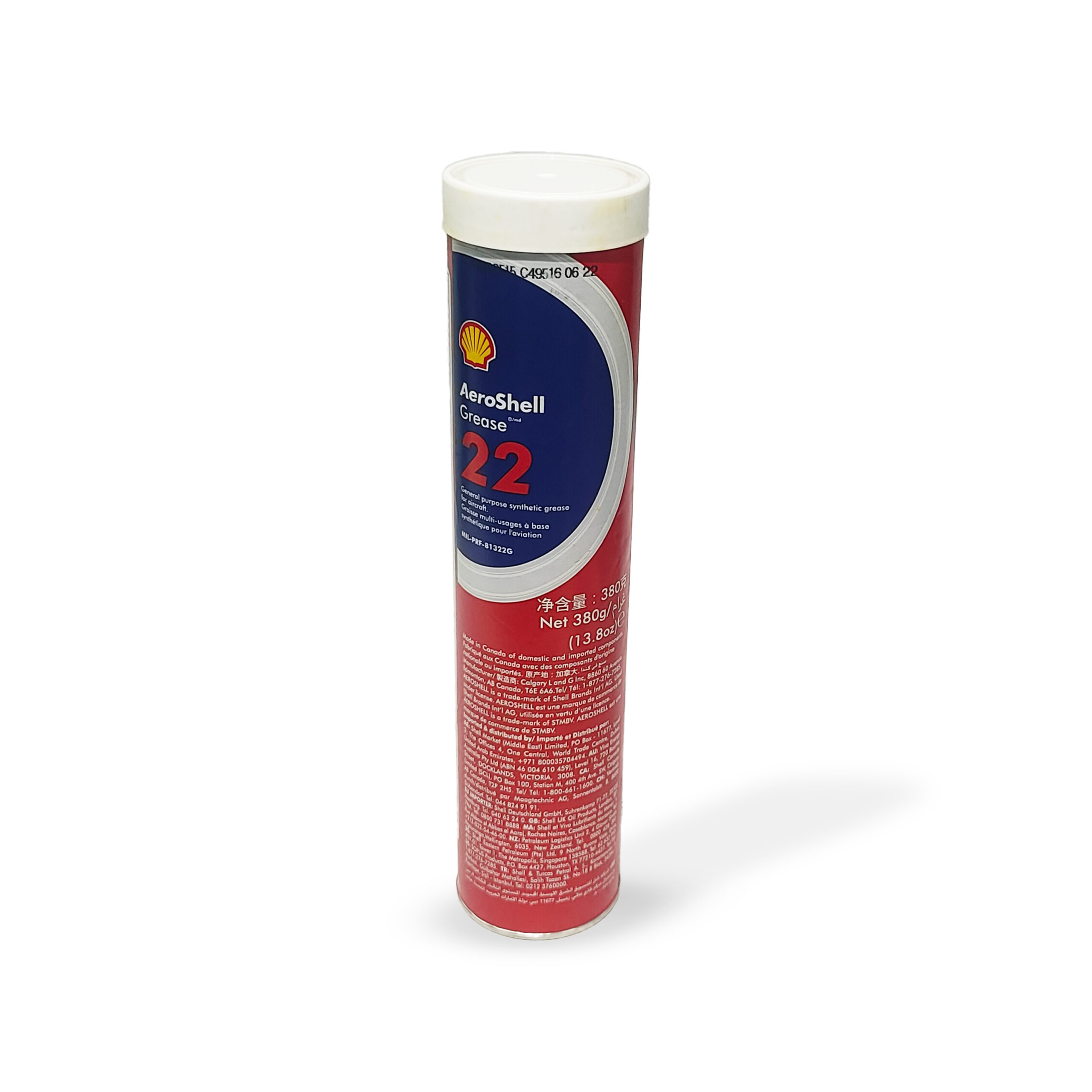 AeroShell Grease 22 is especially recommended for use wherever severe operating conditions are encountered as in high bearing loads, high speeds, wide operating temperature range, and particularly where long grease retention and high resistance to water washout are required. · The wide range of applications include aircraft wheel bearings, engine accessories, control systems, actuators, screw-jacks, servo mechanisms and electric motors, helicopter rotor bearings, instruments, airframe lubrication, hinge pins, static joints, landing gears. · AeroShell Grease 22 contains a synthetic hydrocarbon oil and should not be used in contact with incompatible seal materials