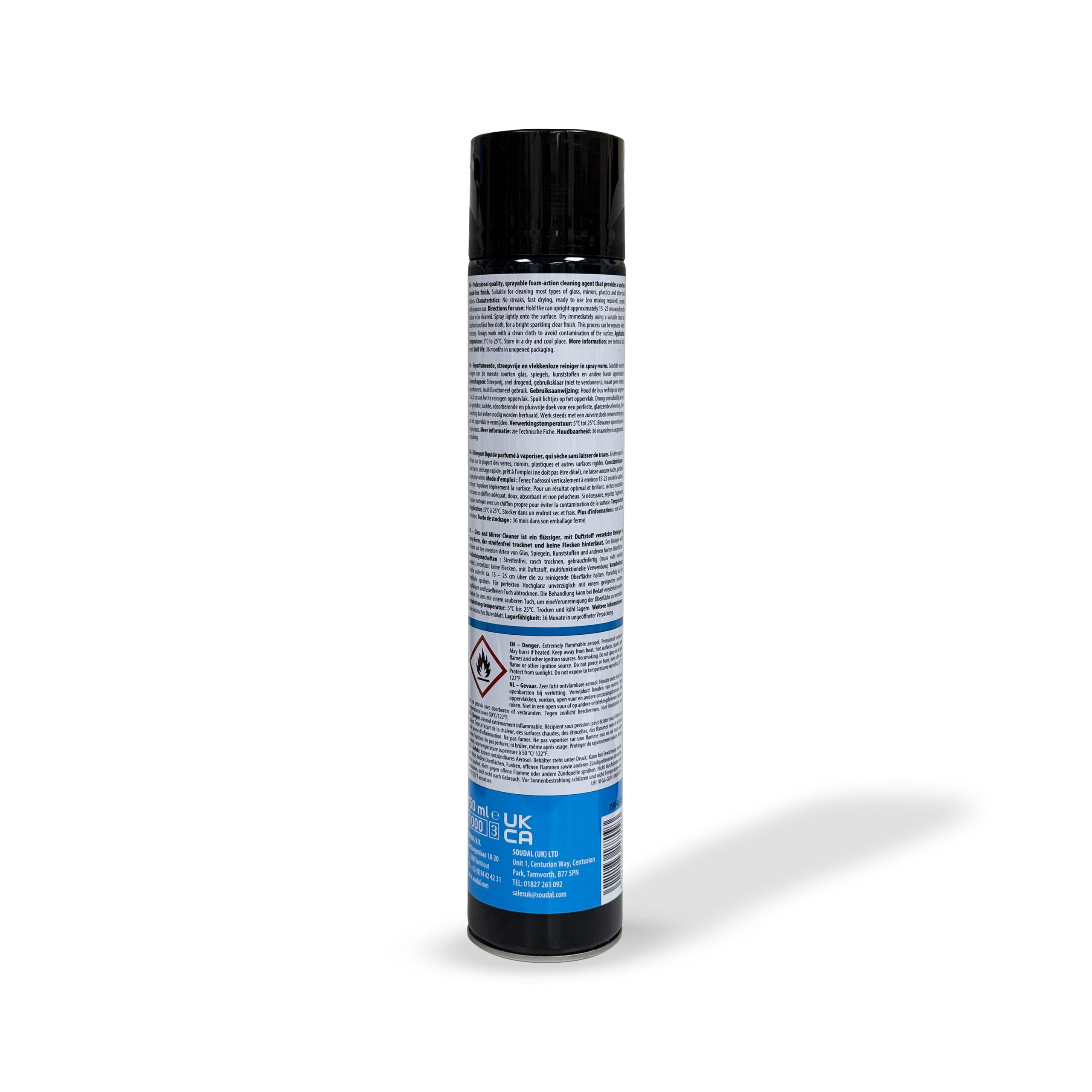 Glass and Mirror Foam Cleaner is a highly effective, fast acting, non-smear, cleaning agent. The cleaner is well suited for the removal of grease deposits (e.g. fingerprints), insect excrement, nicotine, soap residues and other dirt. This on most types of glass surfaces, mirrors and other hard surfaces. The cleaner dries without leaving any streaks and does not stain. Glass and Mirror Foam Cleaner is a cleaning spray with active foam technology in aerosol packaging.