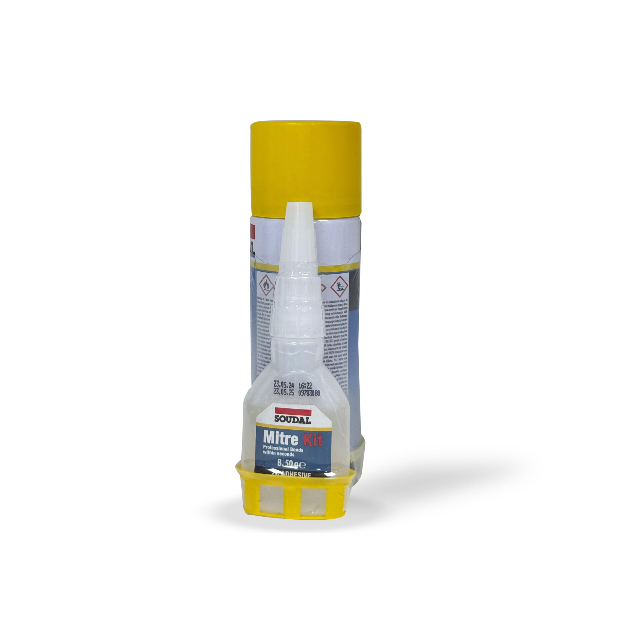 Mitre Kit 2C is a two pack system consisting of a high viscosity cyanoacrylate adhesive and an aerosol activator.